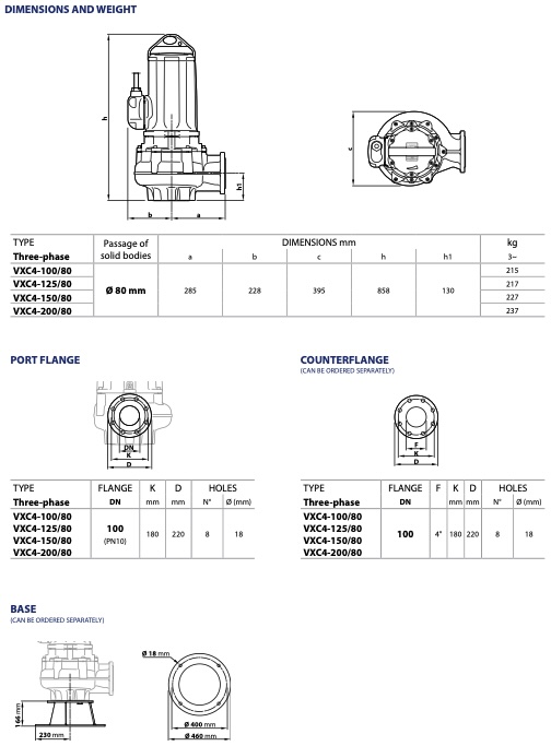 The pumps of the VXC4 series, made of cast iron of considerable thickness, exceptional strength, abrasion resistance and durability, are equipped with a VORTEX type impeller, therefore suitable for draining waste water, sewage, wastewater, mixed mud water, revived and putrid muds. They are suitable for installation in sewers, tunnels, excavations, canals, underground car parks, etc.