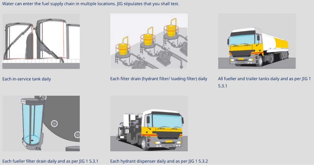 The Shell Water Detector is not designed to be a quantitative test; however, you can perhaps imagine that there is a progressive change in colour with increasing levels of water and the colour change is not purely binary. As a result, the capsule is designed to achieve a strong identifiable colour at 30ppm, leaving a residual risk that some operators may identify a colour change at lower water quantities (so failing in the safe direction). However, if we consider how this equipment is used, which is primarily at into-wing applications, then the water level at this point is typically low single digit ppm levels and so below the lower indication limits of the capsules. I mention this as it effectively eliminates false positives in a well-run fuel supply system and while levels between 10 and 30ppm may be noticed by an operator should they be present and could be perceived as a false positive, they also effectively give early warning of some upstream process or fuel management upset that really should be investigated.