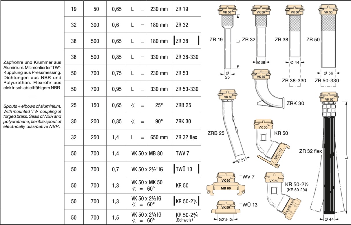 Elaflex ZV 400 & ZV 500, Manual Dispensing Nozzles with TW Coupling