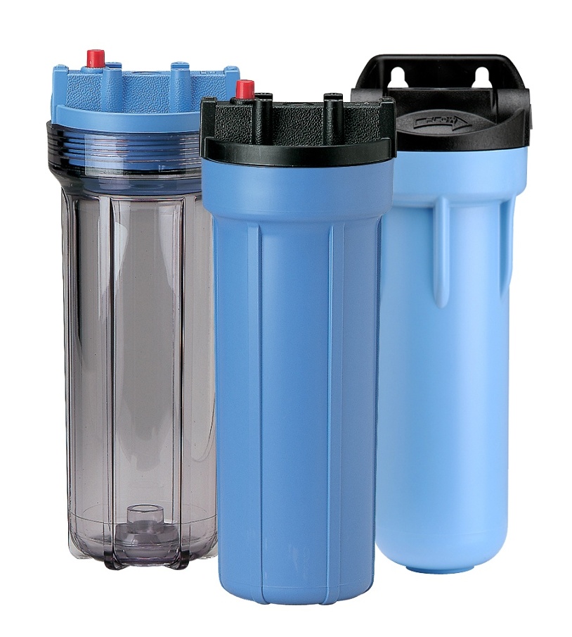 They are equipped with a black, reinforced polypropylene cap and offer an optional pressure-relief button on the inlet side to relieve pressure inside the housing when changing filter cartridges.